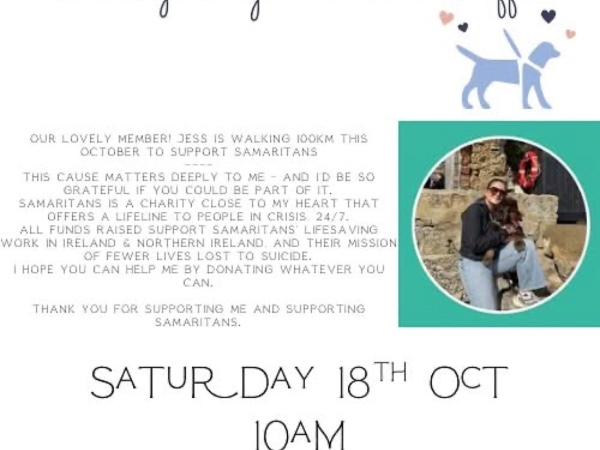 Good Luck Jess with your walk, thanks for doing this fundraising and thank you to Samaritans for all their work xx